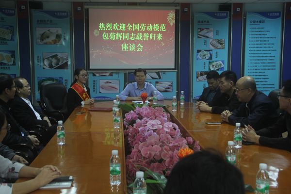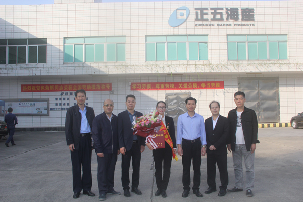 11月27日上午,正五集團(tuán)公司熱烈歡迎“全國勞動模范”包菊輝同志載譽(yù)歸來。集團(tuán)公司董事長黃禮雄帶領(lǐng)集團(tuán)總經(jīng)辦成員及各公司負(fù)責(zé)人、部門經(jīng)理在正五海產(chǎn)公司廣場熱烈歡迎。
